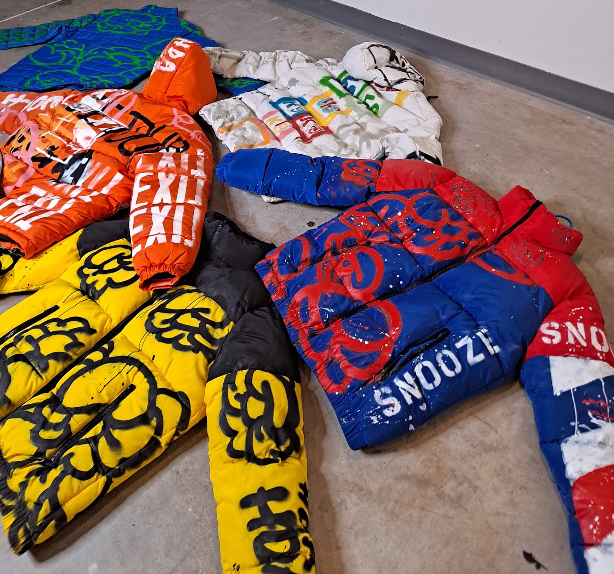 Long before the fashion, iBOMS was finding his way into the city’s art scene. After high school, commissions started coming in: portraits, sneakers, murals. “I wasn’t that good at murals though,” he said, laughing. “I didn’t know how to work the spray can.”