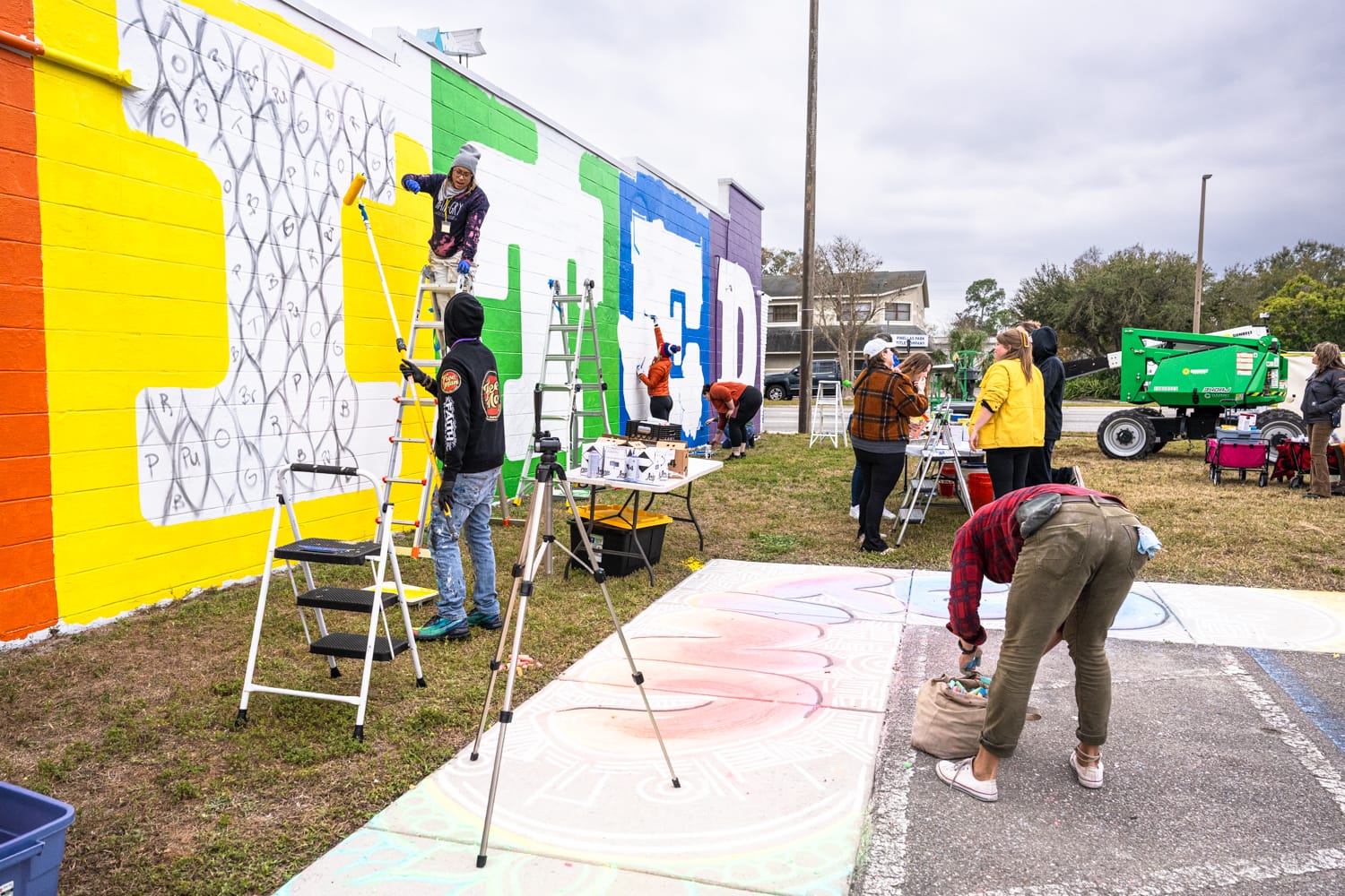 The process was a testament to "grit over gray." More than 100 community members joined six professional artists, The Artist Jones, Miss Crit (Laura Spencer), James Eric Hartzell, Alyssa Marie, and James “Freeman” Kitchens, braving record-breaking Florida cold to lay down backgrounds and support the vision. Parents bundled their children in heavy jackets; volunteers stayed for hours. The turnout, Gascot noted, would have been even larger if the mercury hadn't plummeted.